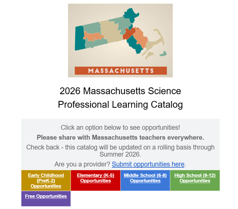 Submit opportunities or job postings to Rachel Buckley at webmaster@massscienceteach.org.